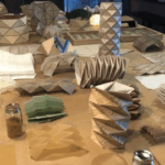 Vid Malmstenskolan på Lidingö har Lauri Vaher och Miro Burman utforskat hur restmaterial från träindustrin kan få nytt liv genom en kombination av traditionellt hantverk, digitala verktyg och hållbara material. Det handlar om nya ytor och former som kan användas för träprodukter som lampor, skärmar och dekorativa polyforma objekt. ORIGAMI har använts som metod för att strukturera och forma dessa material, vilket gör att objekten både kan vikas, formas och anpassas efter olika användningsområden. Arbetet har inspirerats av japansk estetik och ljusets roll i design. Syftet är att visa hur det som redan finns – spill , ljus och material – kan lyftas fram och omvandlas till något nytt och användbart. Projektets resultat består av modeller och prototyper i olika material och tekniker för vidareutveckling inom hållbar design.