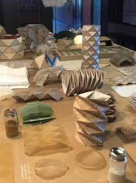 Vid Malmstenskolan på Lidingö har Lauri Vaher och Miro Burman utforskat hur restmaterial från träindustrin kan få nytt liv genom en kombination av traditionellt hantverk, digitala verktyg och hållbara material. Det handlar om nya ytor och former som kan användas för träprodukter som lampor, skärmar och dekorativa polyforma objekt. ORIGAMI har använts som metod för att strukturera och forma dessa material, vilket gör att objekten både kan vikas, formas och anpassas efter olika användningsområden. Arbetet har inspirerats av japansk estetik och ljusets roll i design. Syftet är att visa hur det som redan finns – spill , ljus och material – kan lyftas fram och omvandlas till något nytt och användbart. Projektets resultat består av modeller och prototyper i olika material och tekniker för vidareutveckling inom hållbar design.